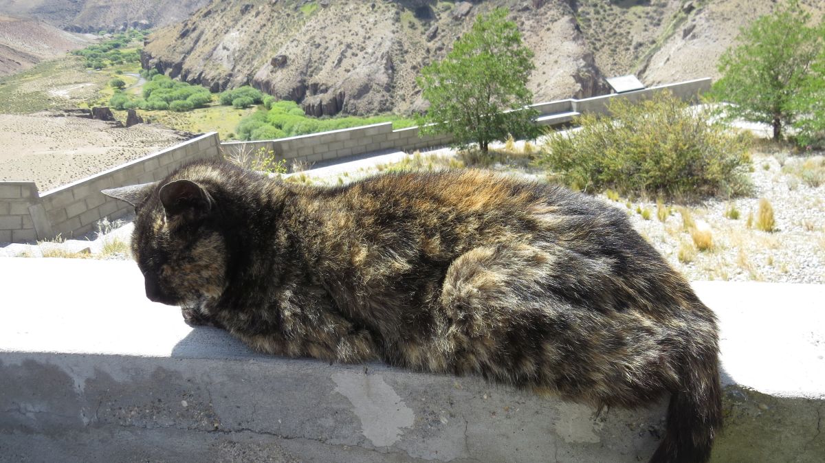 | Väl framme vid grottan, så fick vi vänta en god stund på de andra tre, men eftersom det var soligt så var det en behaglig väntan. Den här katten strök omkring och var helt orädd för främlingar. Han smög upp och la sig på muren precis bakom där jag satt, och jag märkte inget förrän jag ändrade ställning och nästan törnade in i den. Katten brydde sig inte, utan låg kvar. Och hanmade på bild. | ||
