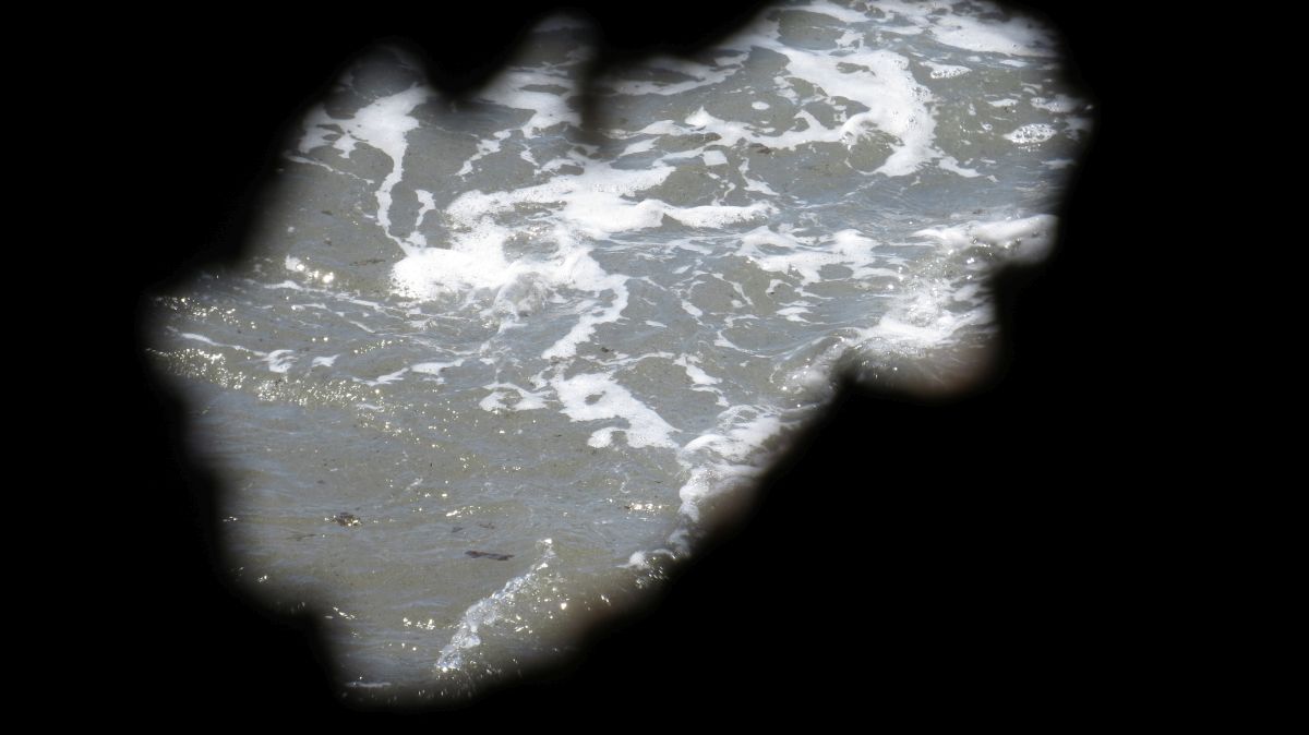 This is from the back of the scene. The outer wall has a hole in it, and through this hole you can see the sea.
