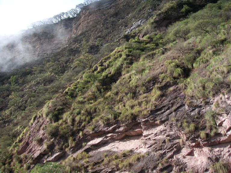 En bild uppåt mot kanten av flodravinen.