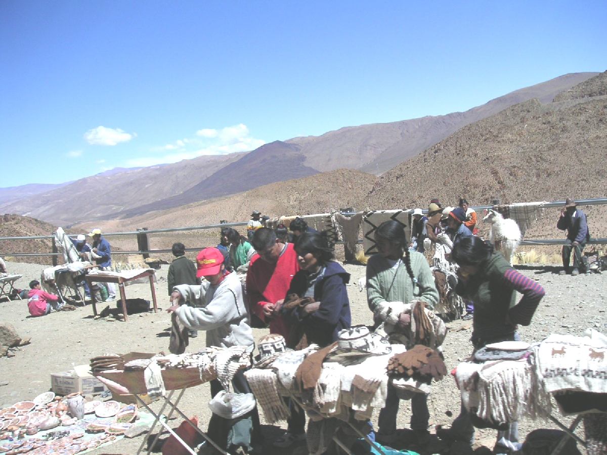 Efter att ha rullat tillbaka över viadukten, så stannar tåget så att folk kan gå av. Den lokala befolkningen – uteslutande quechua-indianer – ser sin chans att sälja souvenirer till turisterna.