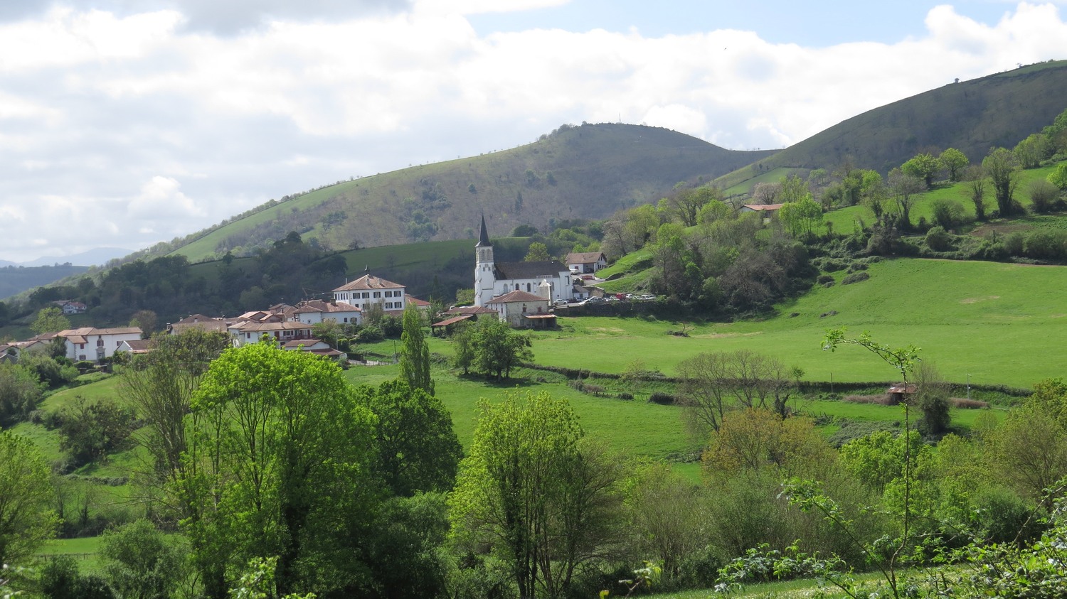 | In the south end of the walk, another village is seen in the distance. Later I found a variation in my book where the walk started in Izura-Asme – which is a shorter drive from Donibane Garazi. | ||||