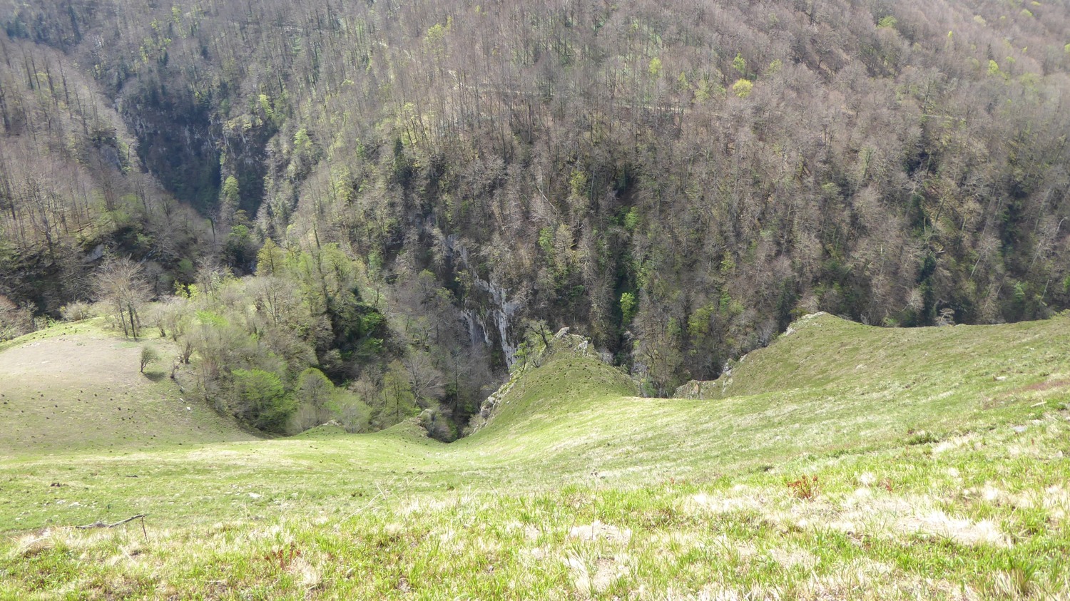 | The gorge is too steep to really be appreciated, but here we can sense a little bit of it. The path that can be seen between the trees on the other side, is the path that I walked in the outward direction earlier. | ||||