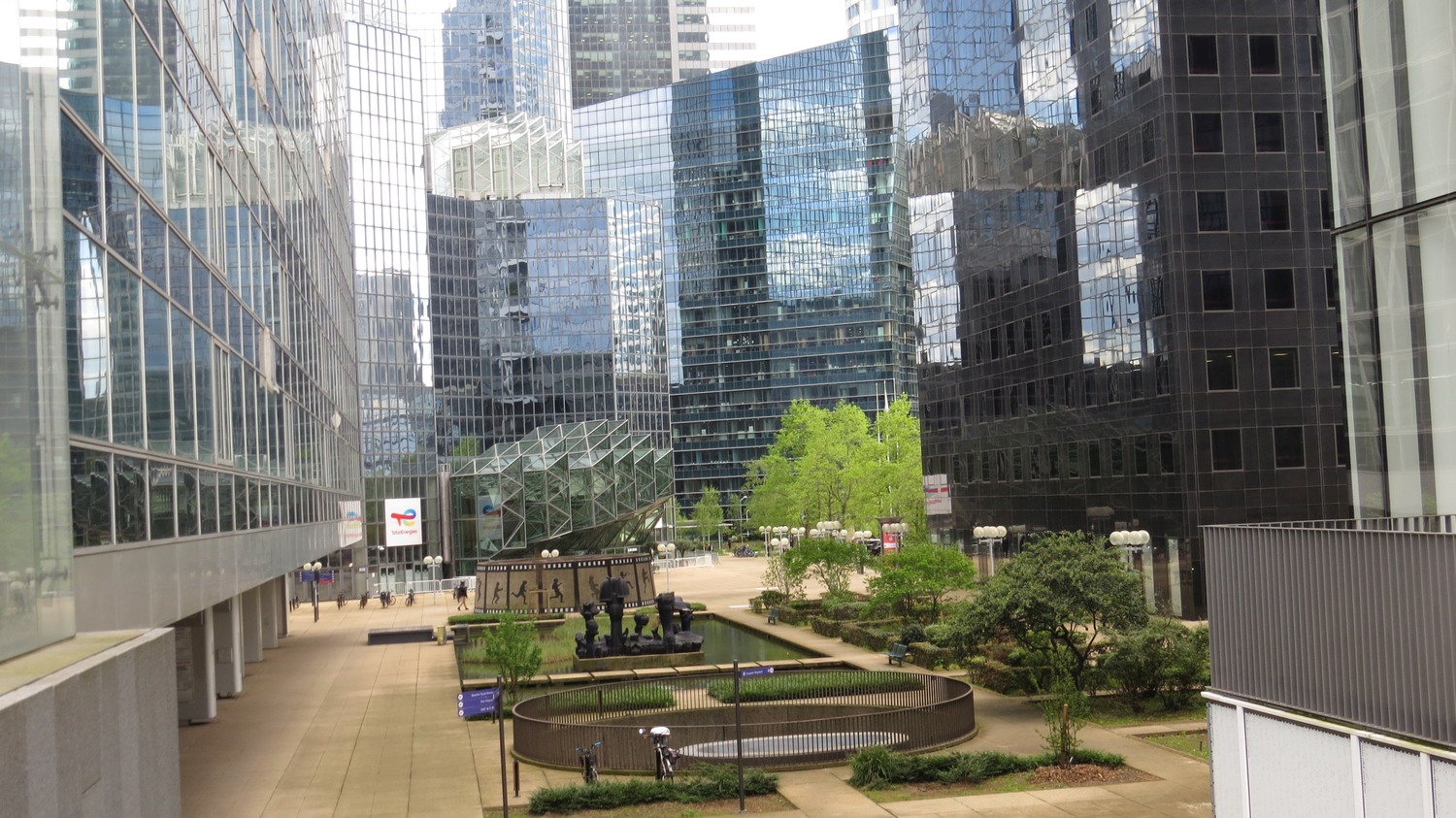 | La Défense is an area in western Paris that is full of modern architecture with glass and steel. I still recall when I first came here in 1991. Coming up from the metro, mmind went No, this can't be true.. Yes, it is... No.. Yes.. I was completely bewildered. Readers from the western continents where every city of any size has something like this may find this reaction funny, but I was a young and innocent country boy from Stockholm at the time. | ||||