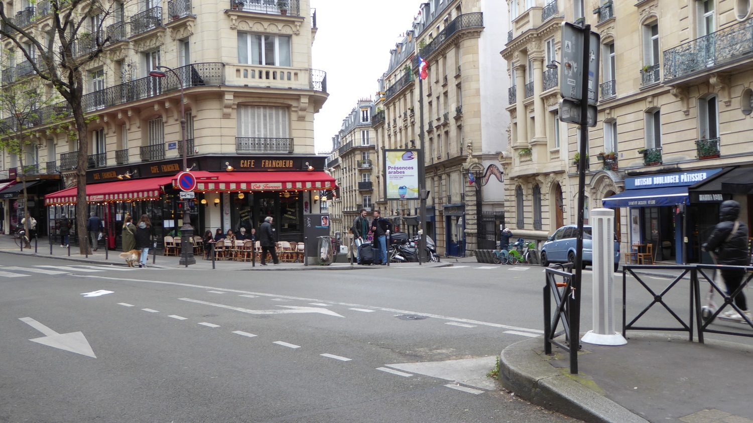 I've now climbed down from hill where Sacré Cœur sits. This street corner on Rue Caulaincourt and Rue Francœur is just such a typical Paris scene with the outdoor café and everything. |