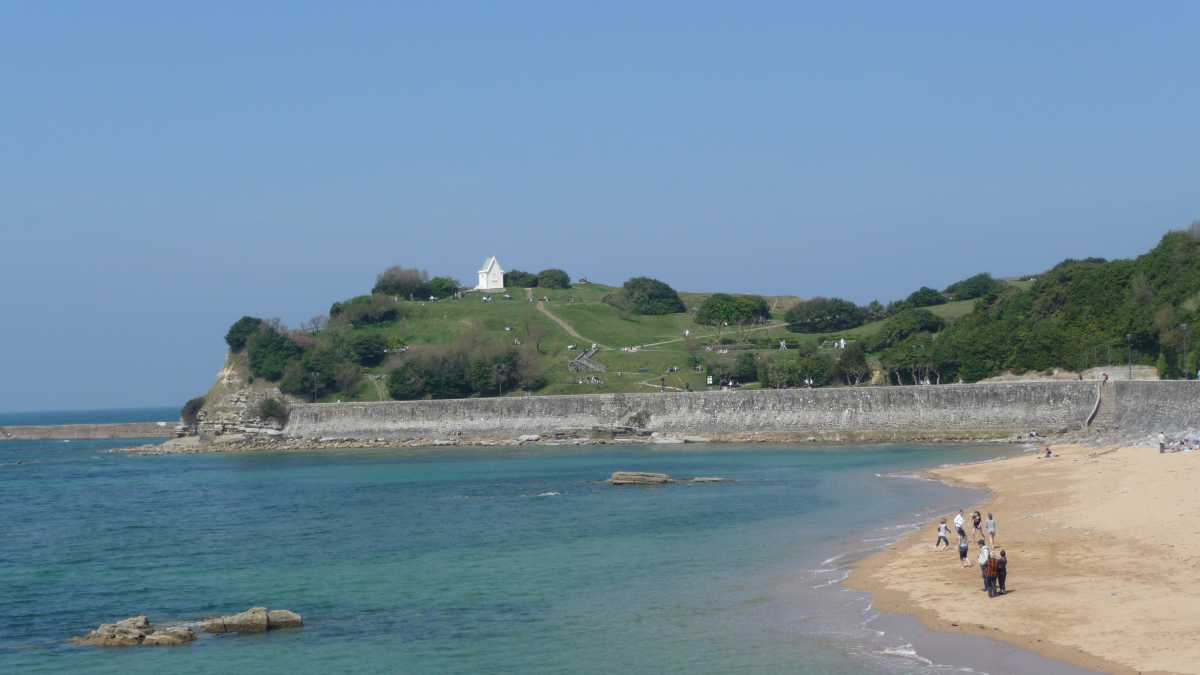 Point de Sainte-Barbe är den lilla udde som sticker ut på norra sidan av vik där Saint-Jean-de-Luz och Ciboure ligger. Som synes är det ett grönområde dit folk drar för att njuta av solljuset en dag som denna. Vad det lilla vita huset är minns jag inte, men det var nog inget särskilt. |