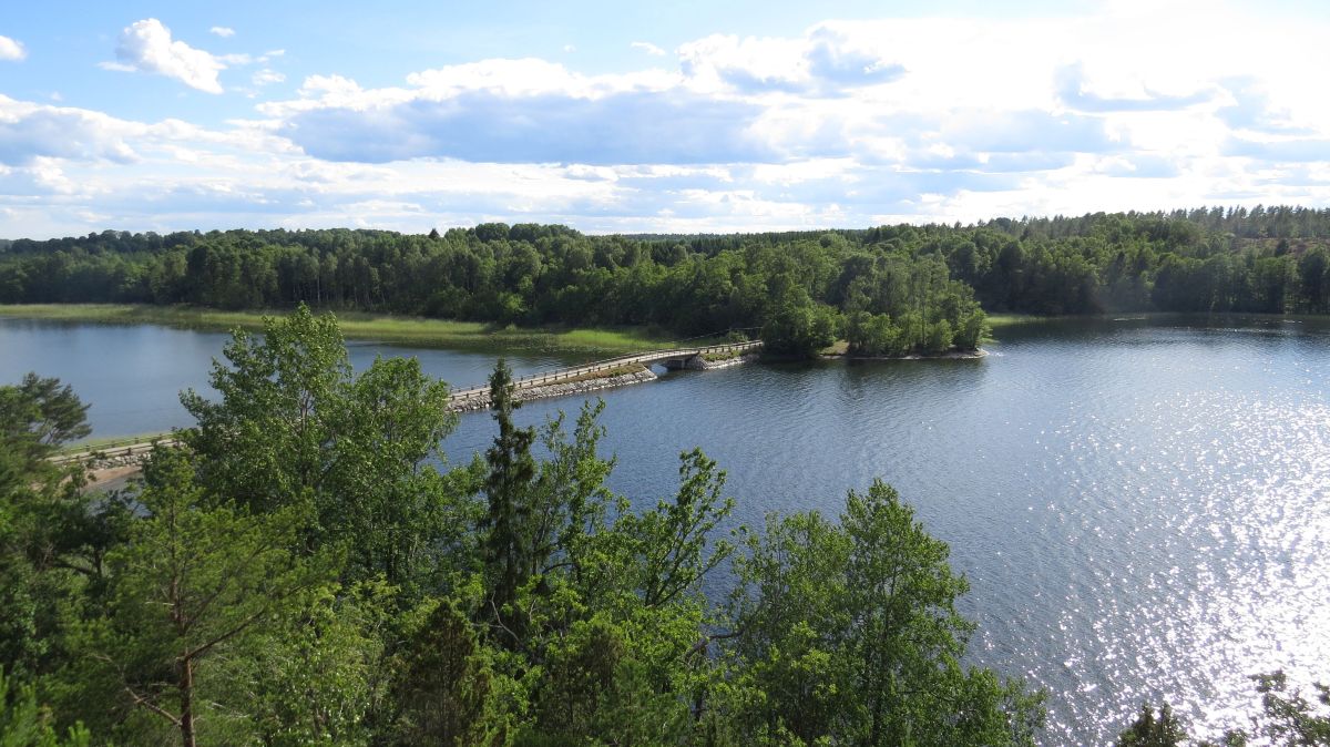 | I took off from the bigger road to Gnesta to take a smaller road, since they are more pleasant to cycle along. It crosses the lake on this bridge, or maybe we should call it a causeway. | ||