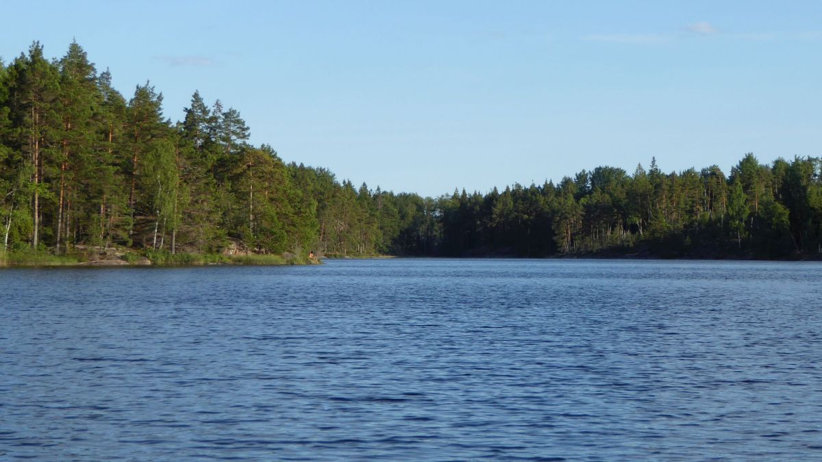 En man sitter och läser en bok vid Långsjön i Tyresta nationalpark och njuter av friden.