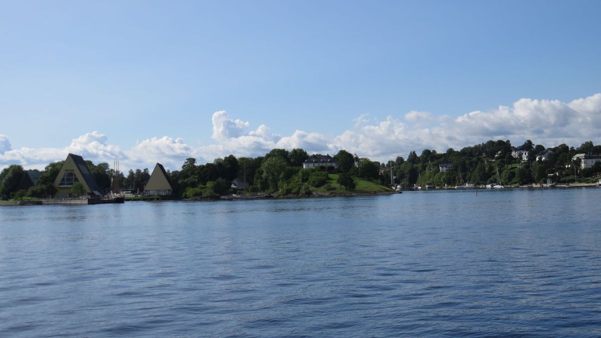 | Namnet till trots, så är Bygdøy en halvö, som inrymmer ett antal musuem som jag dock skippade. Men jag hängde på en liten båttur i Oslofjorden för att se staden från vattnet, och jag tog bilden från båten. | ||
