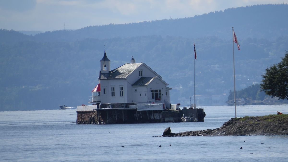 Under båtresan såg jag detta hus som tar upp det mesta av platsen på den lilla ön.