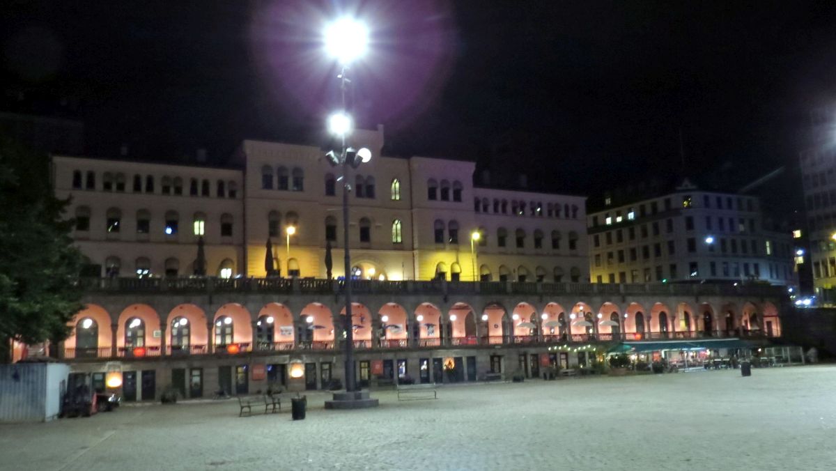 | Vi avslutar med en kvällsbild från Youngstorget, vilket är lite av Oslos svar på Norra Bantorget – både Arbejderpartiet och norska LO håller till här. (Men även borgerliga Venstre.) | ||