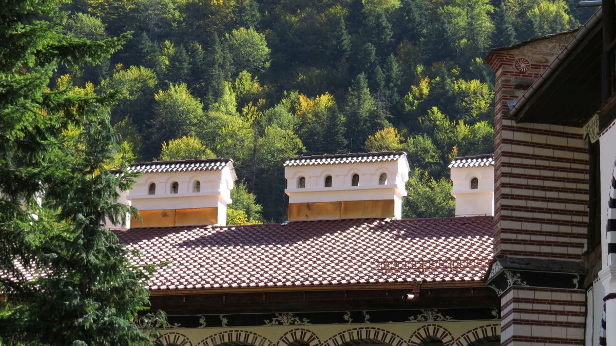 Notera den täta skogen i bakgrunden. På några av bergssidorna går den ända upp till toppen.