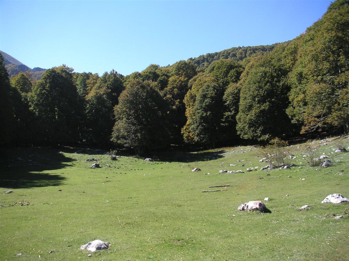 Molnen skingrades, och nästa dag bjöd på strålande sol. Jag siktade in mig på led C3 som går till berget Monte Tranquillo. Vägen gick både genom skog och öppna fält. Här har jag kommit en bit på vägen. |