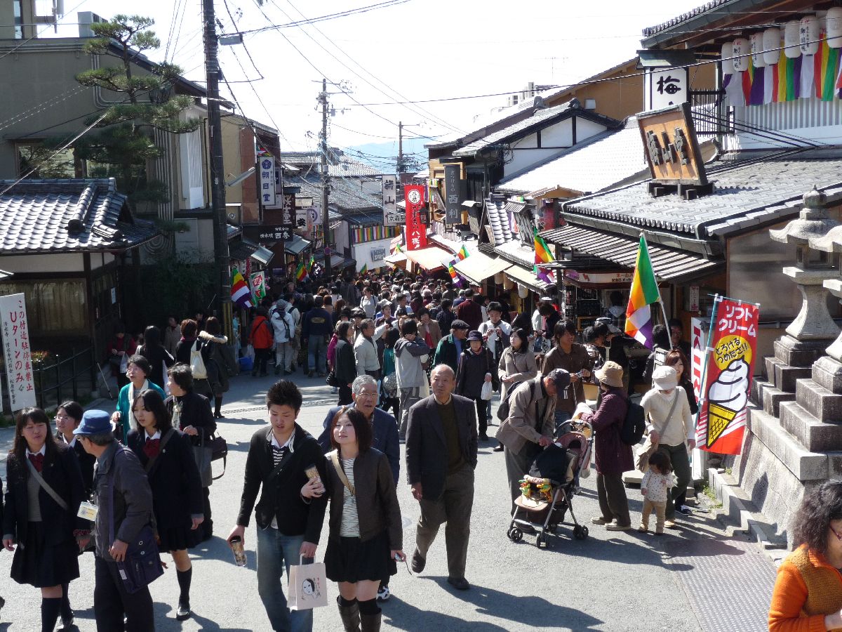 I took the quiet back road to the temple. Most tourists arrive through the Kiyomizu-zaka street. And they were many.