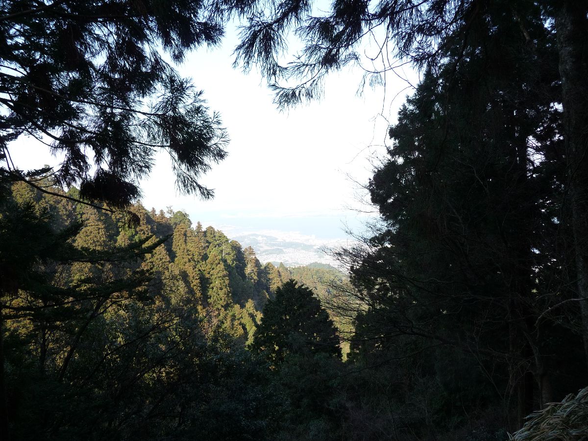 I'm on my way back to the cable care, after a failed attempt to catch the bus back to Kyoto. (I entered a bus that I thought was going there. The bus driver obviously asked where I was going, addressing me as Gaijin, the word the Japanese use for non-Japanese. I suspect that the bus after all did go to Kyoto, even if not to Kyoto station.) Anyway, here is a view through the trees over Biwa-ko, the biggest lake in Japan. (And the second oldest lake in the world, but don't ask me how they can know that.) |