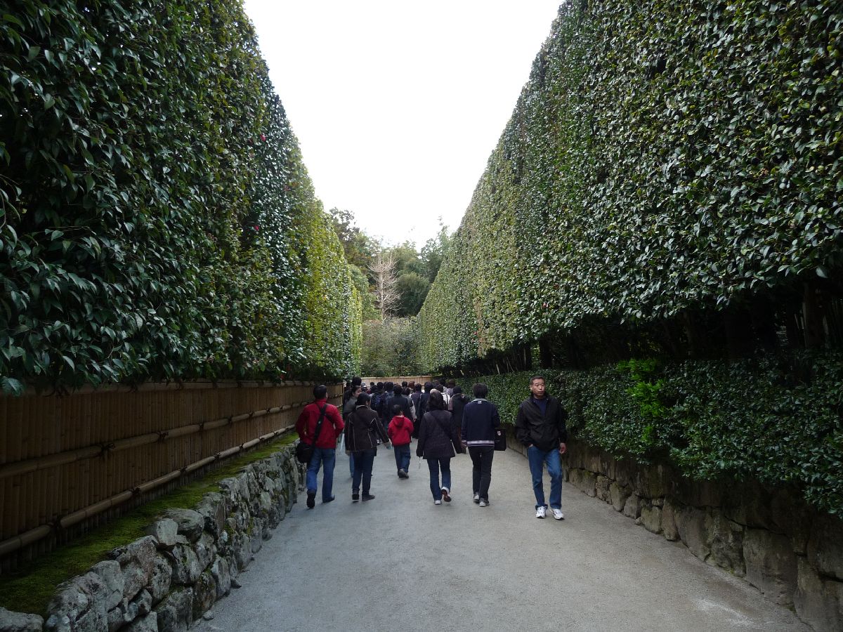 Ginkaku-ji, the Silver Pavilion is one more temple. Despite the name it is not cast in silver (in difference to Kinkaku-ji which really is gilded, but that's a temple that I didn't make it to). What is worth the visit to Ginkaku-ji is in any case the garden. This mega-hedge is the way into the place. |