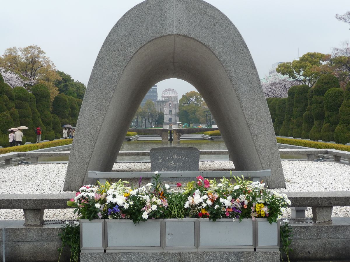 Explanation in the next picture. In the background the Flame of Peace and further back the Atomic Bomb Dome.