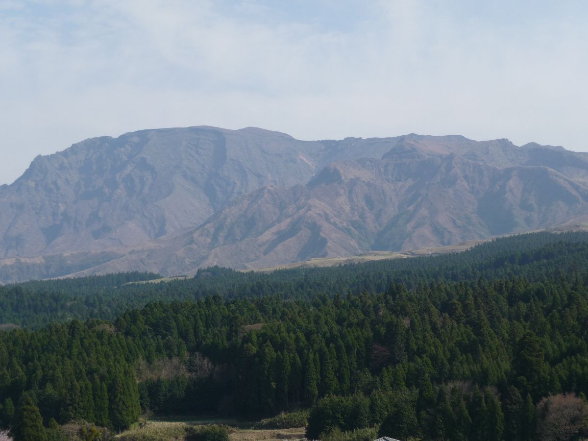 Aso-san in the distance in the haze.