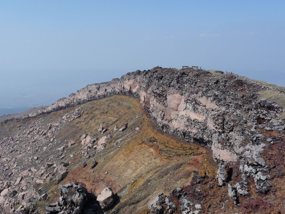 I'm now down on the second viewing platform. There is a path that leads back to the starting point, and I even saw guiding poles indicating where the trail goes. But that part of the trail is closed, surely of security reasons. It goes not very far from the crater, and a walk there could give you a little too much of sulphur in the lungs. So I took that other ropeway down, and I was then fortunate get a hitch with a Japanese gentleman who also had been hiking on the mountain. |