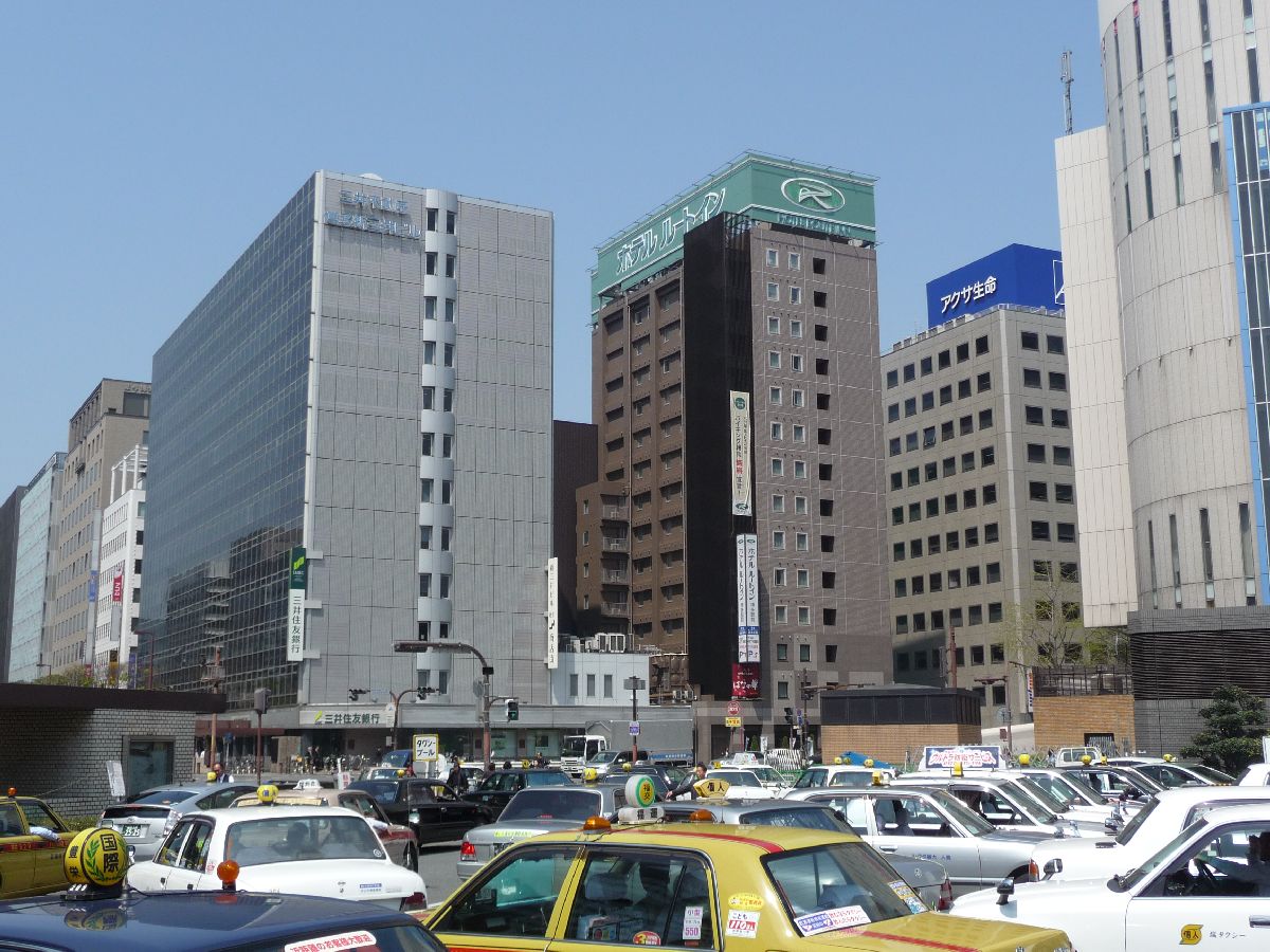 This is how it looks outside the railway station. Fukuoka is the end point of the Shinkansen line from Tokyo, but you will never see Fukuoka in the time tables. The train station carries the name Hakata. I believe that originally they were two cities that have amalgamated into one. |