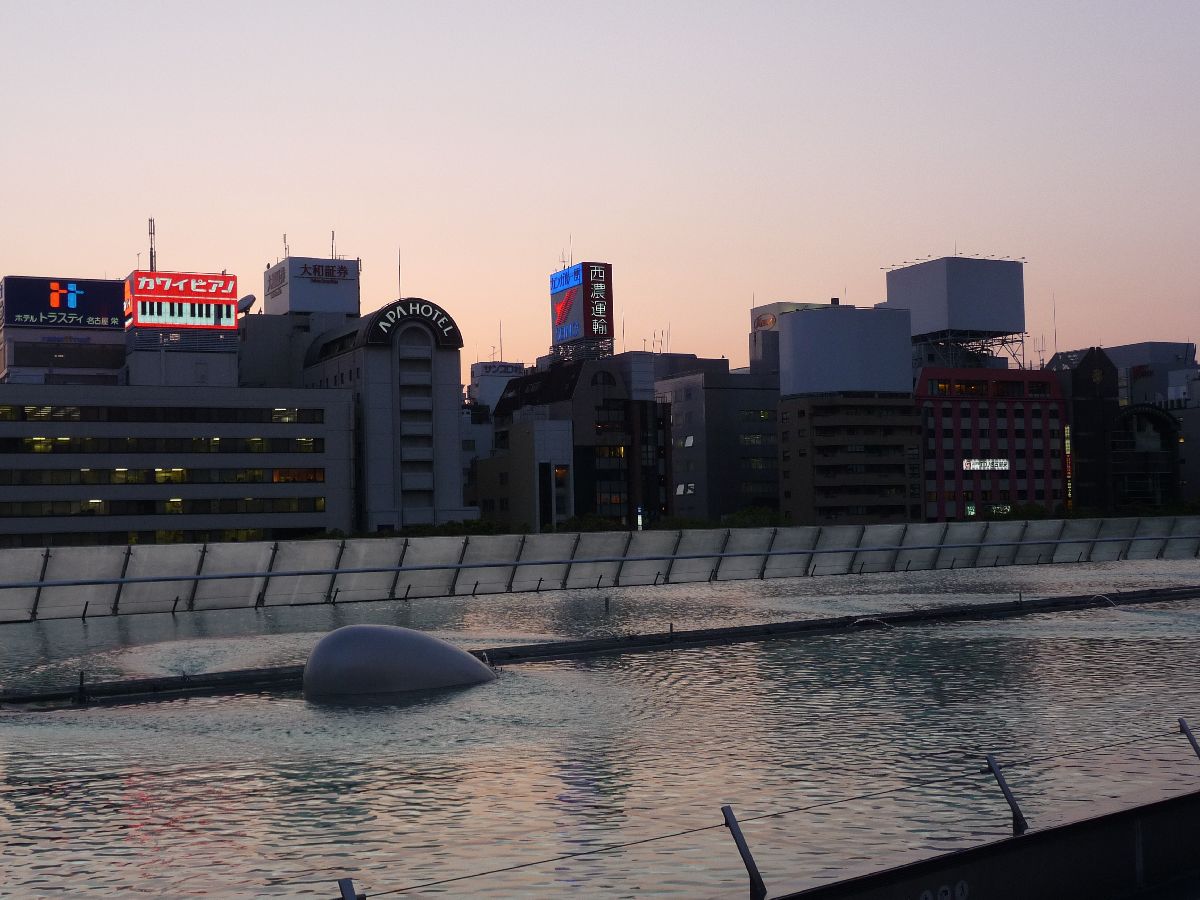 Oasis 21 is a bus terminal and a shopping mall. On the flat roof there is a shallow pool a couple of metres above the