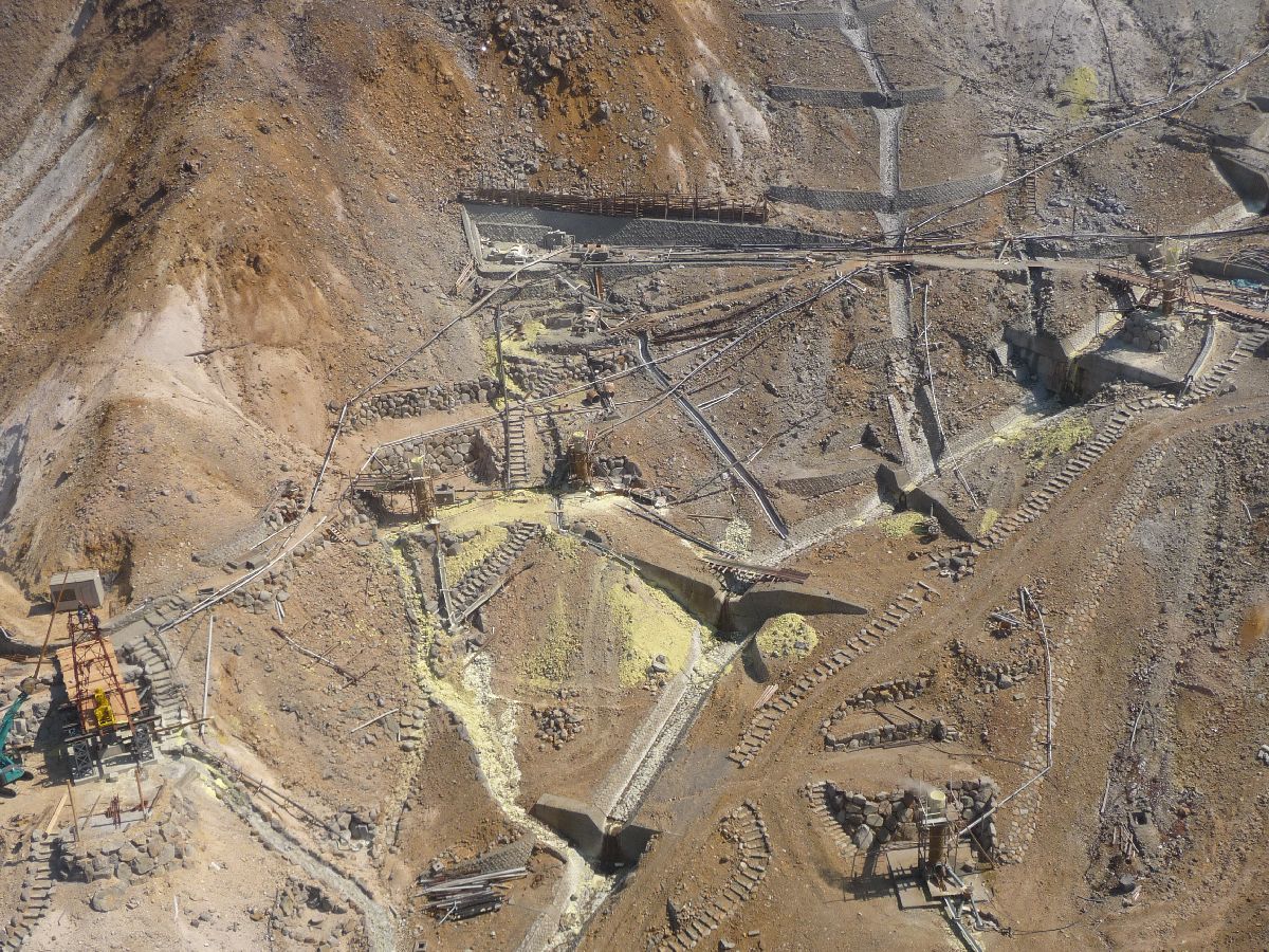 In a slope there was some kind of work going on. Presumably, this is an attempt to keep the water in check when there is heavy rain. The yellow colour reveals volcanic activity.