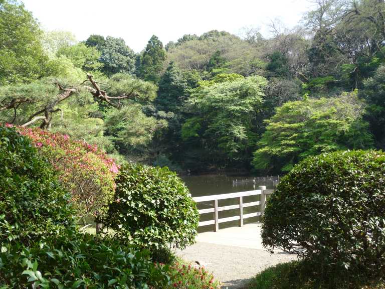 I trädgården finns – som i de flesta japanska trädgårdar – en damm.