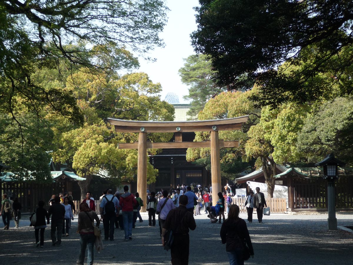 Jag lämnade till slut det underbara lugnet i den inre gården, och fortsatte mot templet. Nu är jag vid den sista torii-bågen och nästan framme. Tittar du i bakgrunden, kan du se Bautastenen sticka fram.