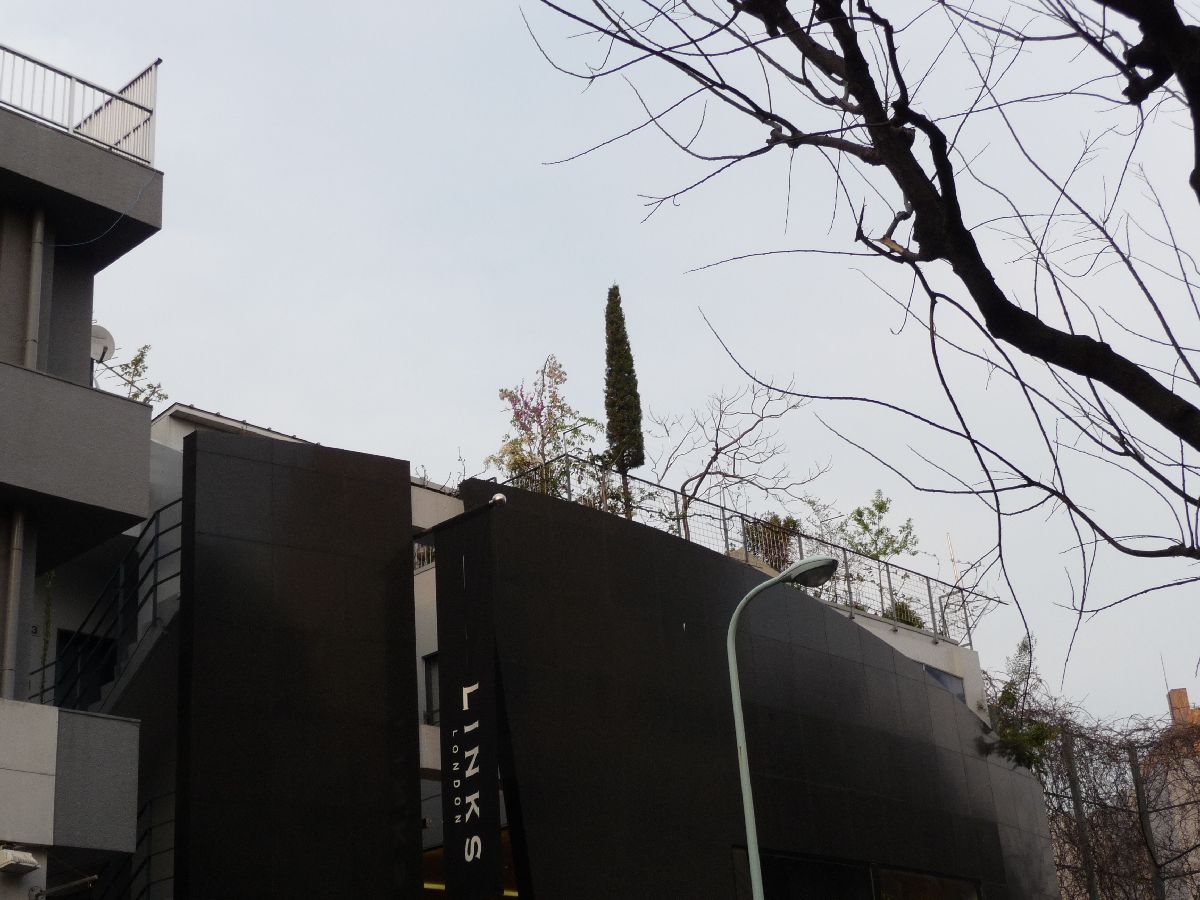 Jag lyften blicken och noterade att på taket över en ännu exklsiv affär hade man en trädgård med träd och allt.