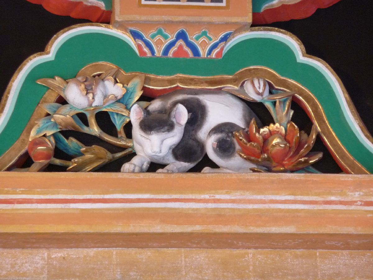 For a special entrance fee you can ascend above the shrine to come to the tomb of Ieyasu Tokugawa. Just as you have passed that entrance cat, you pass a door above which there is this cat, which is one of the very most popular carvings in Tosho-gu. |