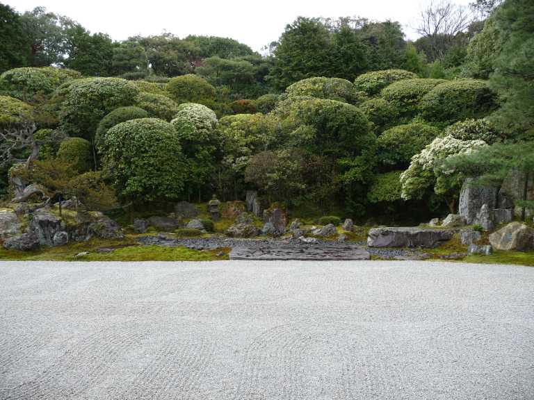 This is from Konchi-in, which is part of a Zen temple. Zen temples often have a "dry garden", a gravelled yard with some stones the the Zen-Buddhist monks meditated over. This garden is known as The Crane and the Cradle, so-called after the rock formations. I will have to confess that I saw neither of them – I focused on the overall beauty of the garden. |