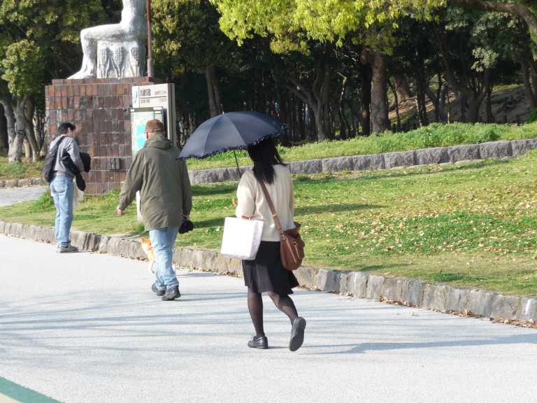You saw them every now and then. Japanese ladies walking around with an umbrella in the sunshine. What you don't see is that she is also wearing thin black gloves. Apparently, all sorts of sun tan are unwelcome!. The most remarkable case was in Tokyo, my very first day while I was heading for my hotel. As a fairly young woman entered Takashimaya, one of Tokyo's most exclusive department stores, she collapsed her umbrella. There had been sunshine we my planed touched down, but now it was overcast. And it would take 2-3 more hours before it started to rain. ¿Que? |