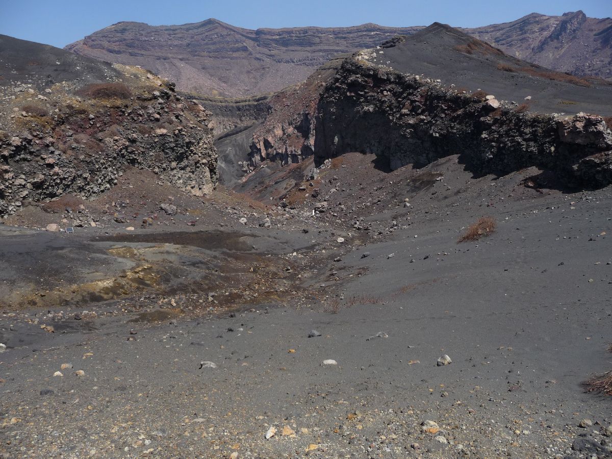 Det är möjligt att gå runt nästan hela vägen runt Naka-dake. Ja, alltså inte precis på kanten, men på ett visst avstånd i ett kargt vulkaniskt bergslandskap. Det var en fin promenad i en solig dag. Och lugn: många åkte upp för att se själva vulkanen, men bergspromenaden var det inte många som gav sig på. Den fick jag njuta av i ensamhet. |
