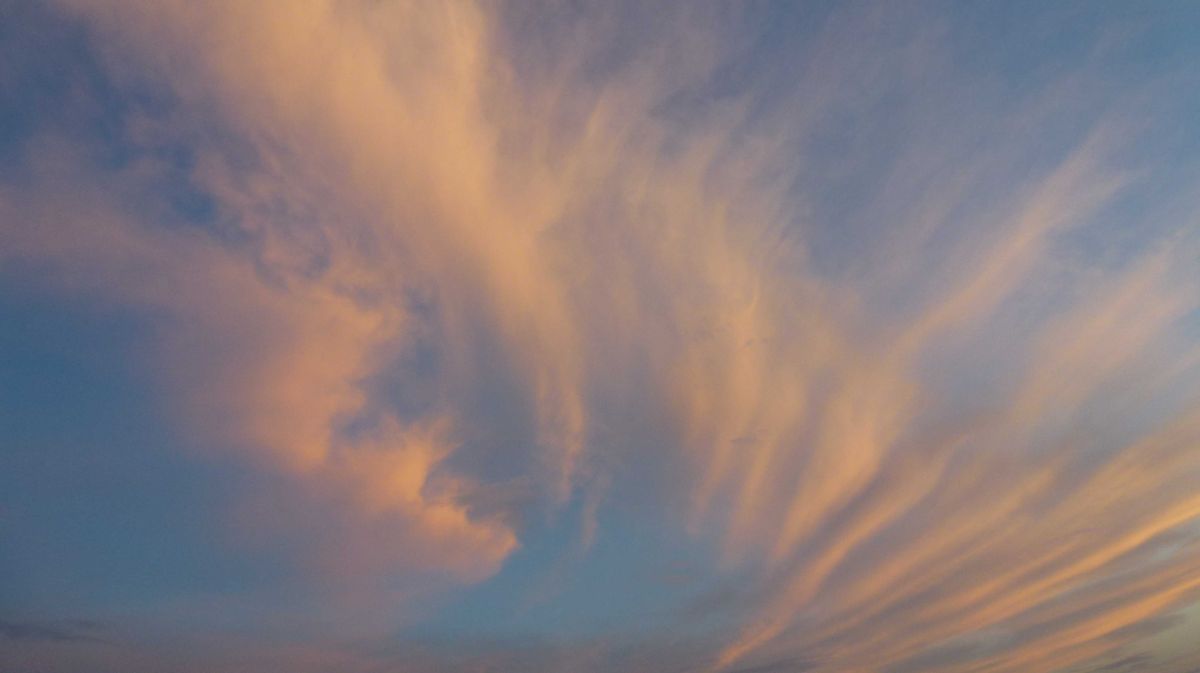 En kväll, en timme innan solnedgången, fångade jag hur solljuset spelade i molnen från mitt fönster.