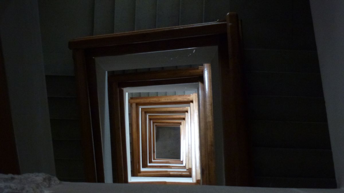 En märklig bild på ett trapphus från ovan. (Från parlamentspalatset i Bukarest.)