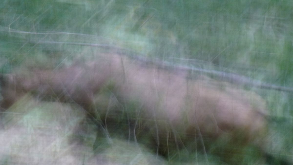 An abstract composition that... OK, so this picture was a failure seen from the original intent, but it looks kind of cool. (What it is? A deer that suddenly appeared just a few metres ahead of me, and I had too much zoom.)