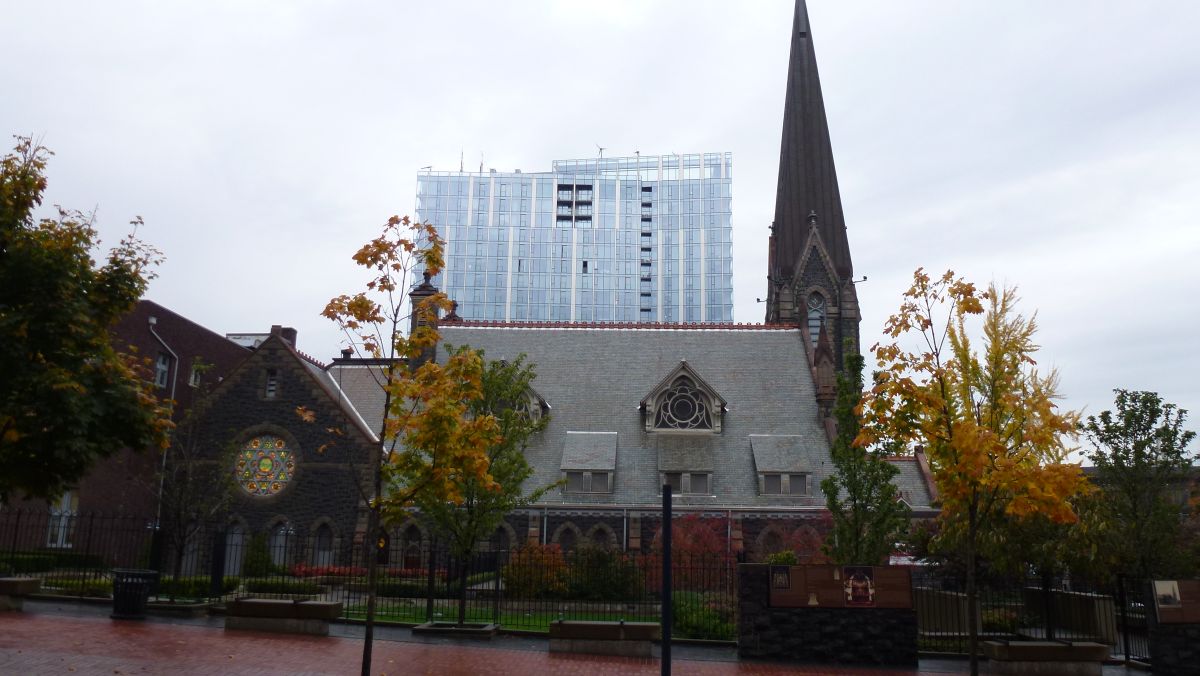Ytterligare en skillnad mot Seattle. Jag såg åtminstone fyra kyrkor under mitt flanerande i centrala Portland. I centrala Seattle, där jag flanerat rätt mycket, har jag inte sett en enda. (Jo, men bara på håll.) Detta är First Presbyterian Church. |