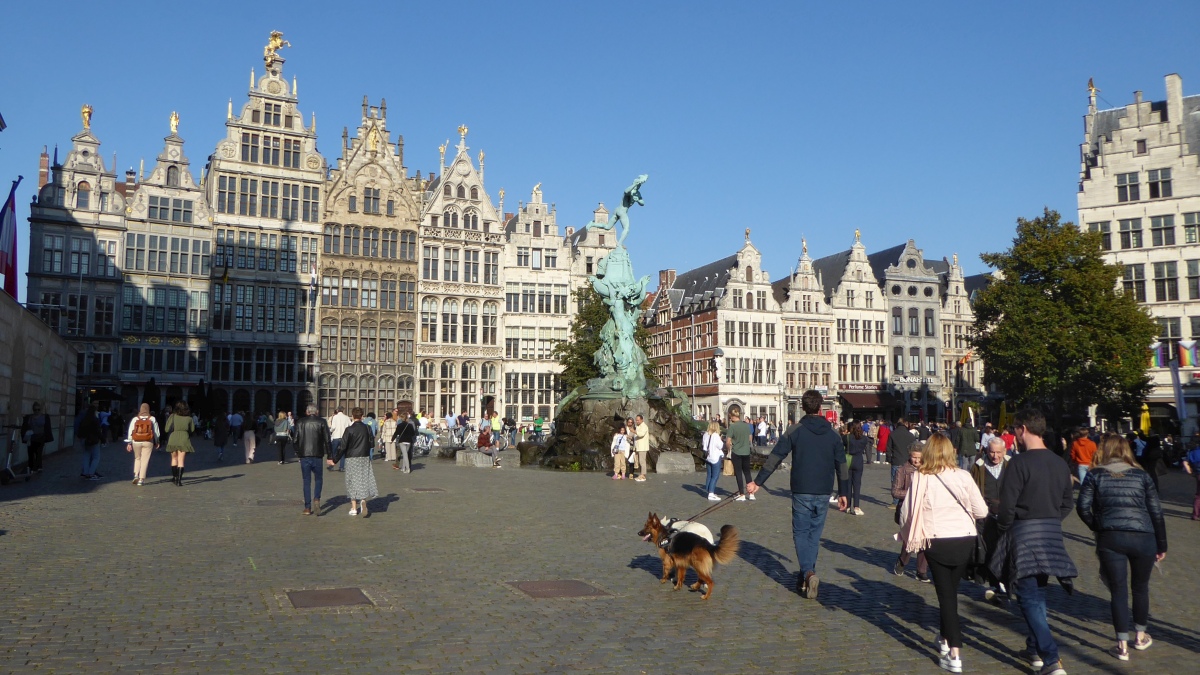 | Stora torget i Antwerpen är kanske inte lika stort som Grand Place, men det är inte litet. Och det är omgärdat av många vackra hus. Absolut en upplevelse. | ||
