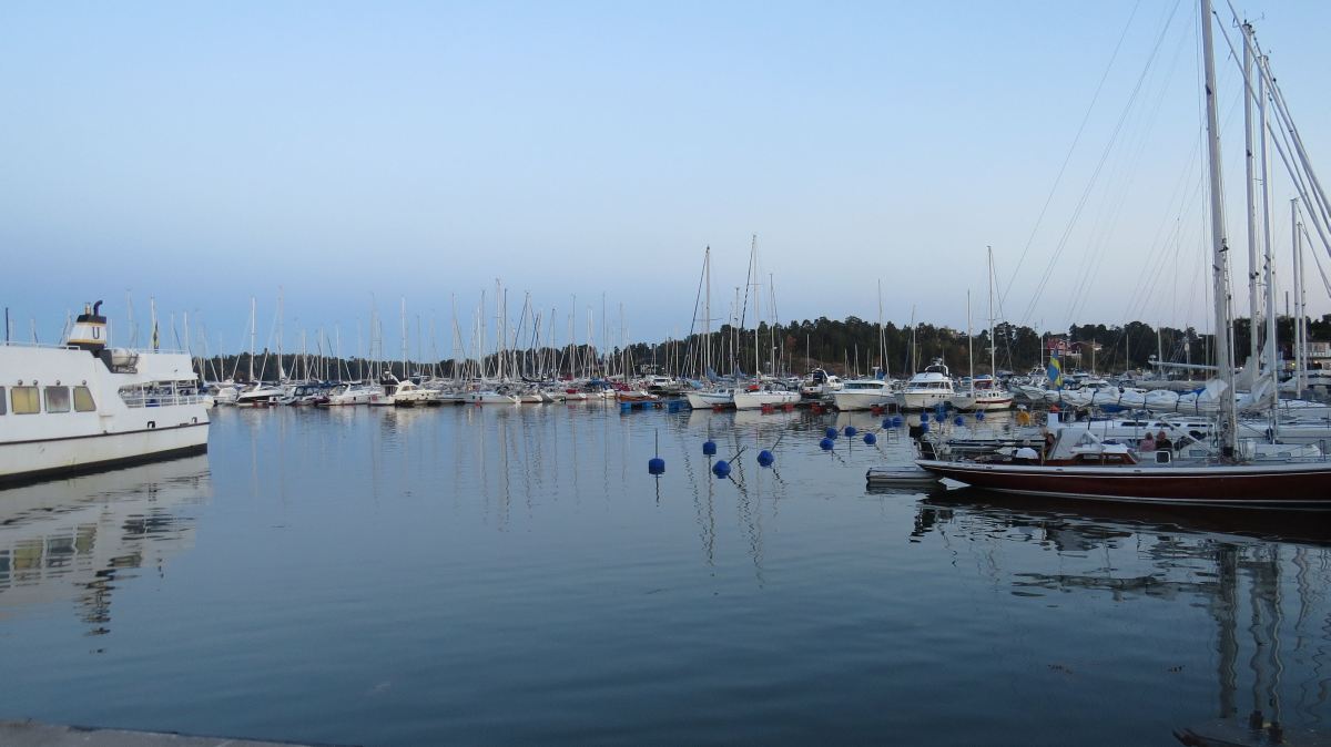 När jag kom tillbaka till Nynäshamn, så gick tåget precis, och det var en halvtimme till nästa. Jag tänkte att då kan jag lika gärna käka middag i Nynäshamn, och efter akutinköp av en T-shirt för att bli någorlunda presentabel, så spisade jag på en av krogarna i gästhamnen. Det ligger en och annan båt här. |