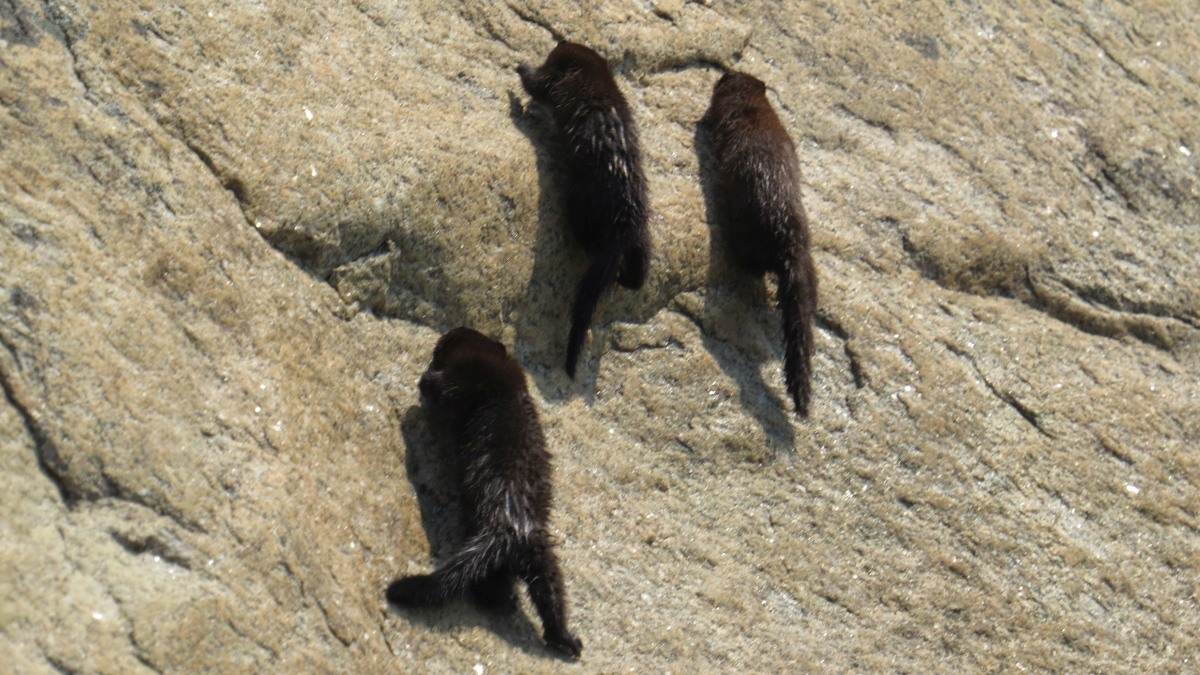 | Jag ligger och badar på en sten när det plötstligt rasslar till från en skreva bakom mig, och ut kommer ett antal illrar. De stannade inte riktigt för att säga omelett, men jag hann fota några av dem i flykten. | ||
