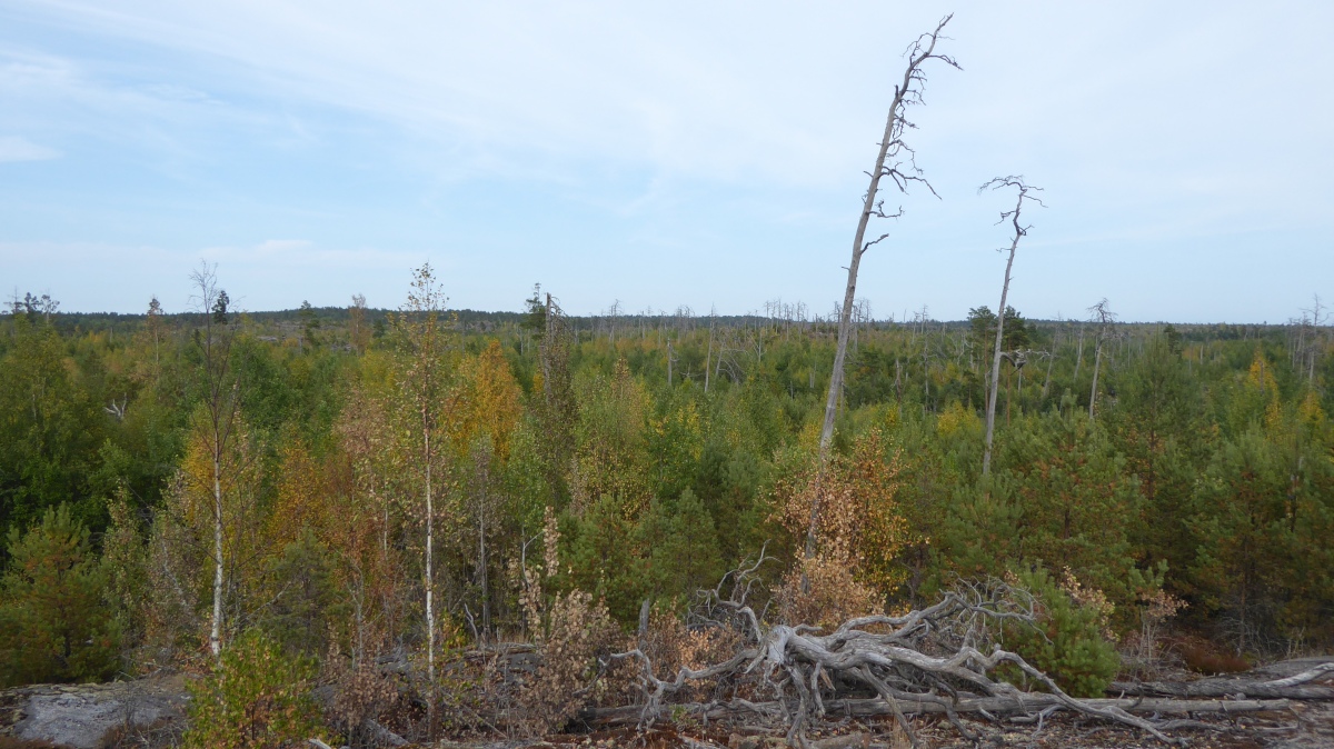 A view over the fire area that now 22 years after the fire is dominated by young birches.