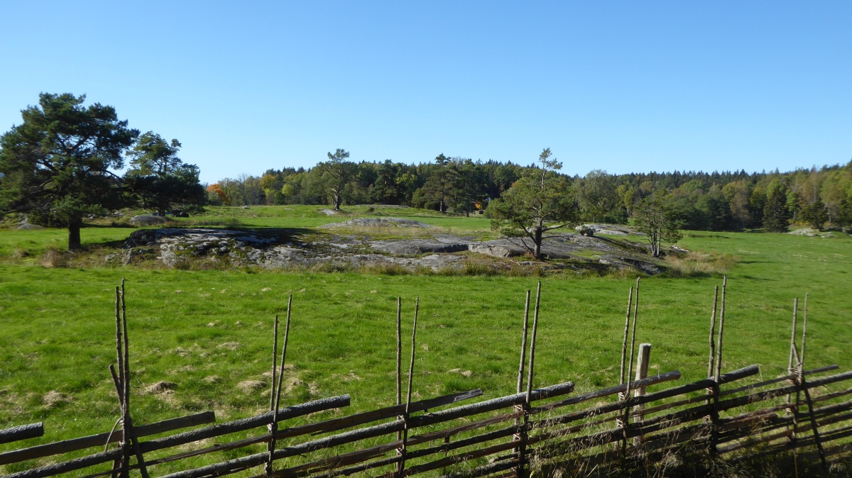 | Hagen kring Tyresta gård. Det finns en bild från 2019 på samma hage, men det är mycket grönare på denna bild. Skillnaden är att bilden från 2019 är tagen mitt i sommaren, medan detta är från sista helgen i september. (Denna helg bjöd på strålande väder.) | ||