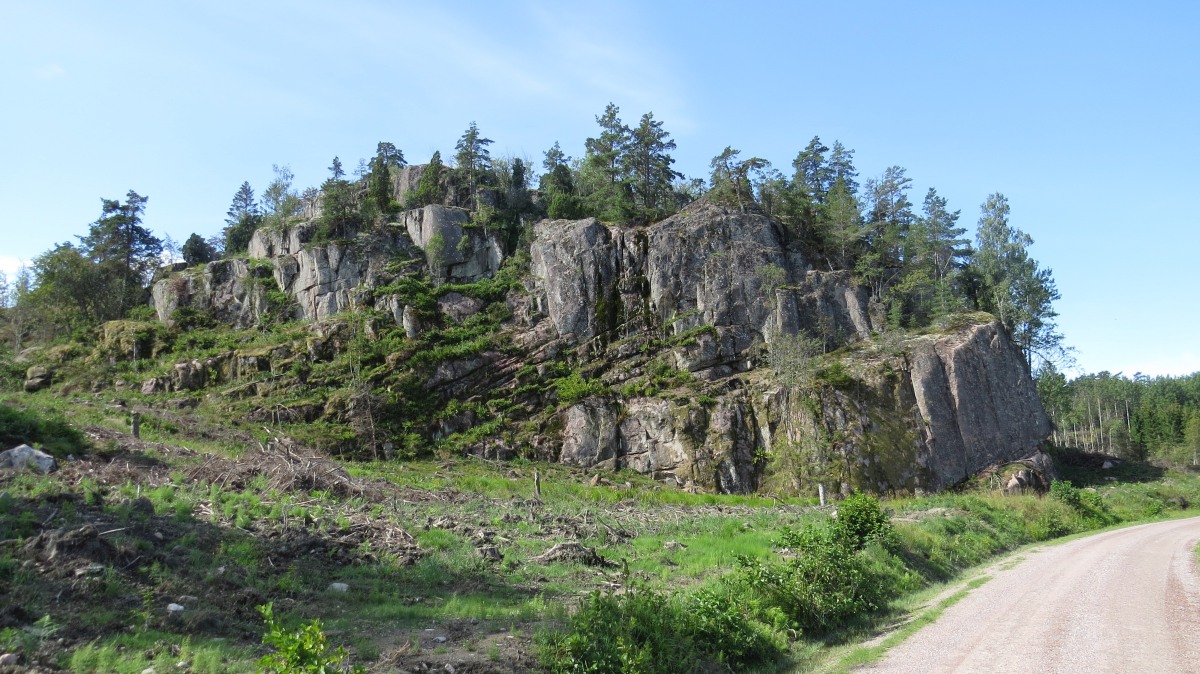 Här kommer bilder från sommarens längsta tur. Jag tog cykeln på tåget till Nyköping, och tog mig sedan via Studsvik och diverse andra omvägar till Vagnhärad för att ta tåget hem igen. Totalt blev det 86 km. På denna mäktiga klippa har det en gång legat en fornborg. |