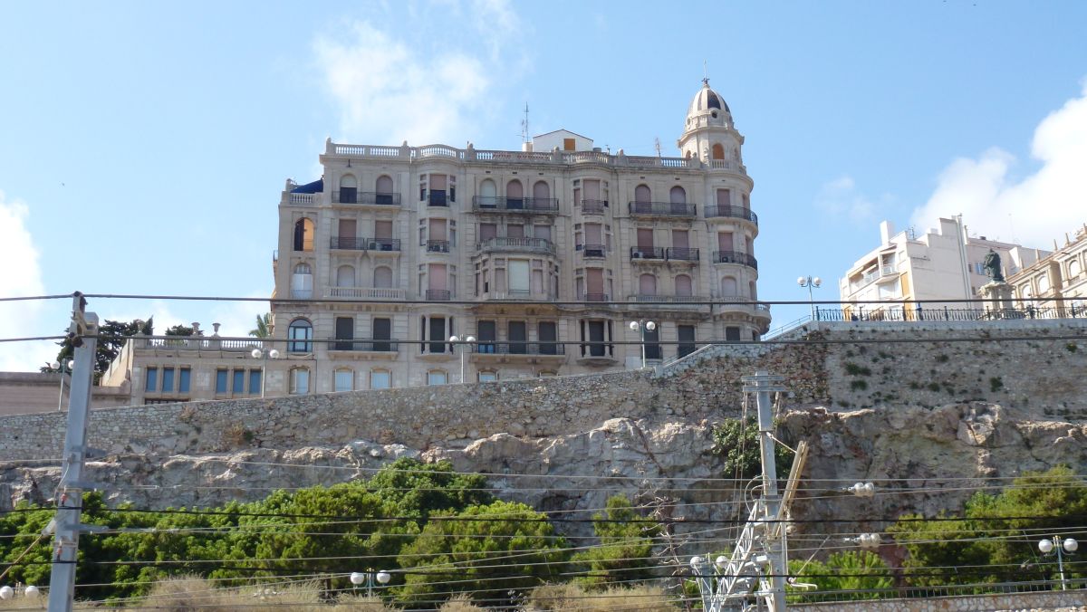 Jag tog mig även ner till stranden om än inte för att bada. Här ett elegant hus sett nere från strandpromenaden. Det är mycket ledningar från järnvägen som skymmer sikten.