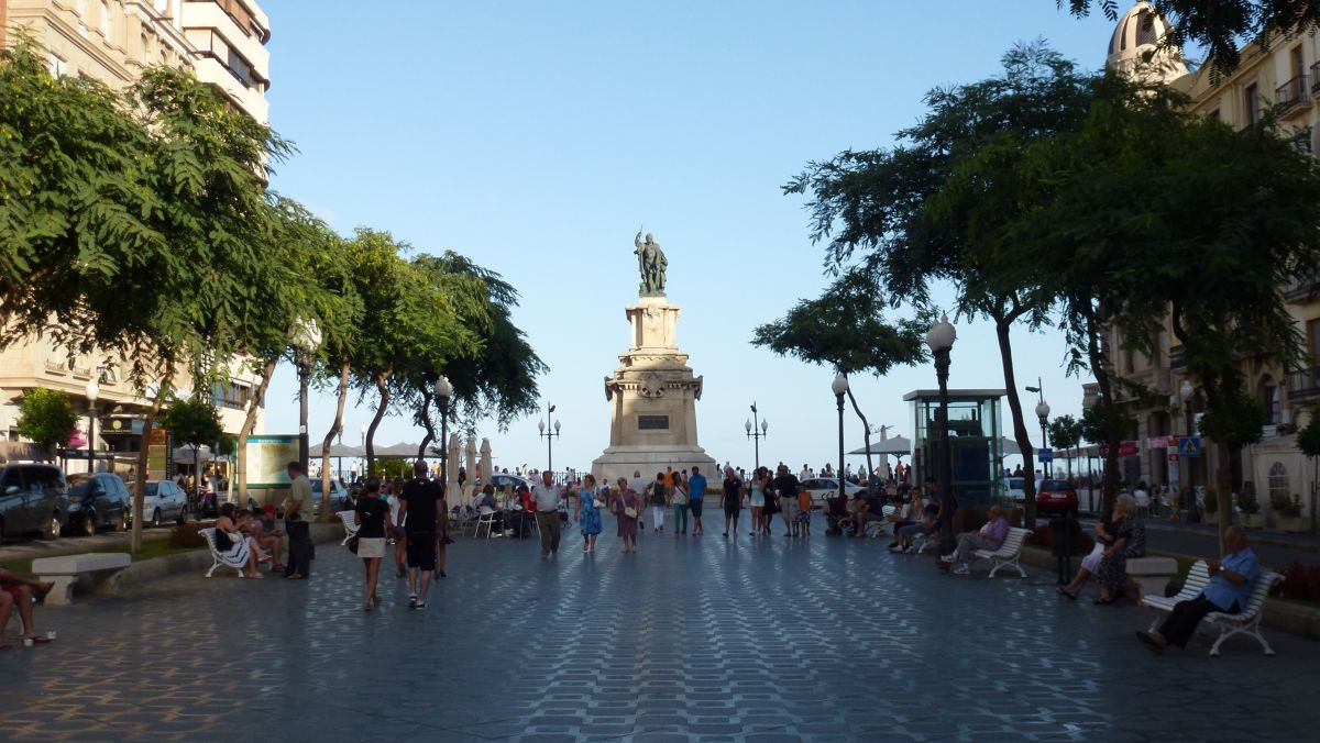 Tillbaka i stan efter utflykten till akvedukten. Solen står lägre, och nu börjar folket samlas för att flanera på Rambla Nova.