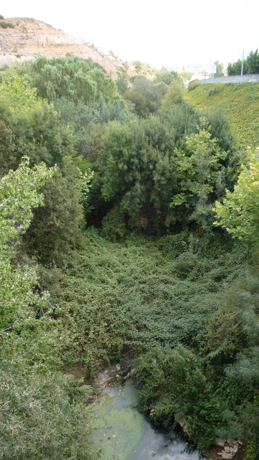 När jag var klar med Montblanc steg jag på tåget och åkte en station till L'Espluga de Francolí. Riu Francolí är den flod från vilken romarna tog vatten till Tarraco (som dom kallade staden) över akvedukten vi såg tidigare. Här passerade jag över floden, som inte precis är imponerade, men vattnet räcker i alla fall för att underhålla en rejäl vegetation. |