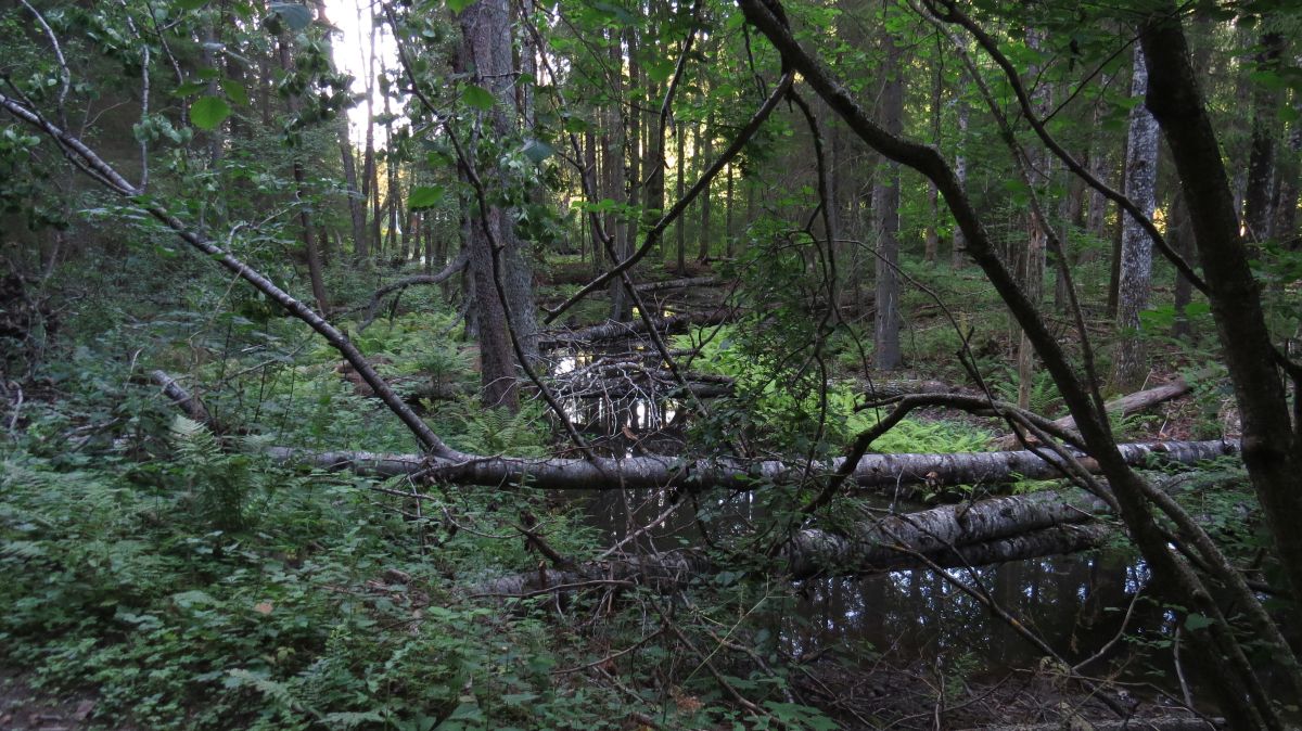 Det börjar bli kväll och jag är på väg tillbaka till järnvägsstationen, och jag går på en skogsstig som följer en bäck.