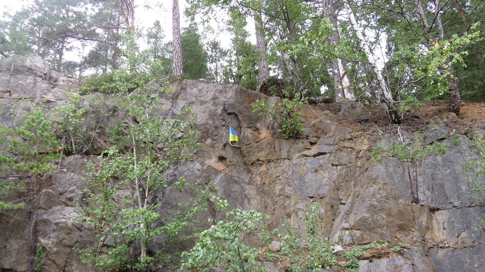 Och på en klippa vid en glänta vid en skogsjö har någon satt upp vad som ser ut som en enkel ukrainsk flagga. Det värmer.