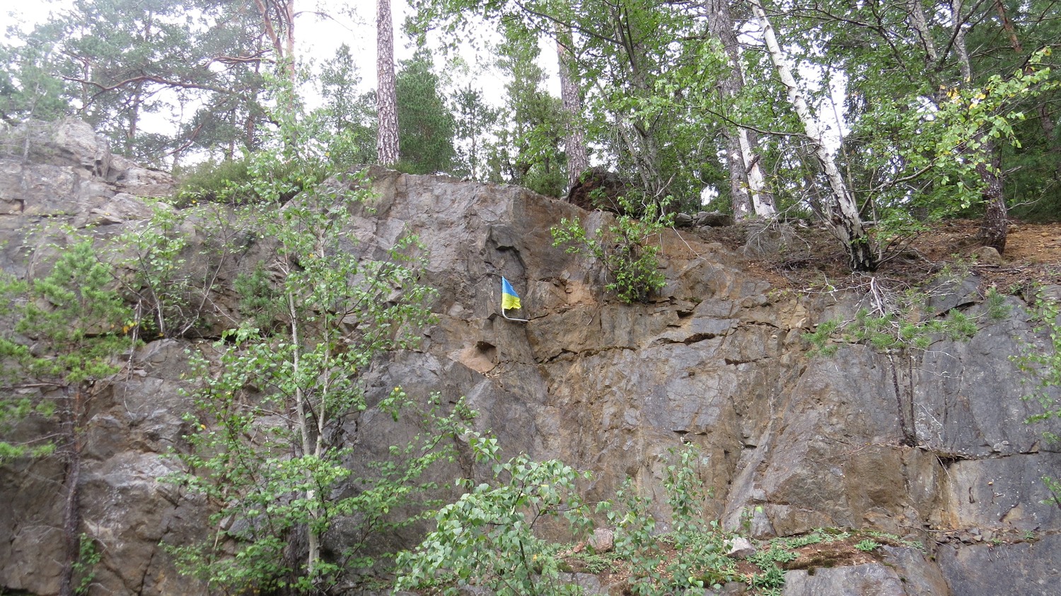 And on a rock in a clearing by a forest lake, someone has put up what looks like a makeshift version of the Ukrainian flag. I like it!