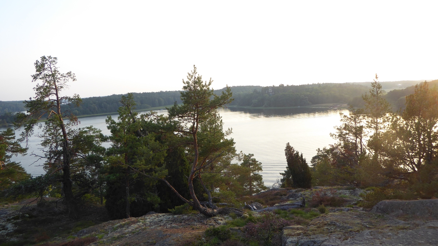 | Till slut blev det en helg då man kunde åka ut just för att bada. Men då hade de hunnit bli den andra helgen i september. Högholmen är ett utskott på Kärsön mittemot Drottningholm, och en av mina favoritbadplatser. Detta är på berget ovanför, och jag klättrade upp innan jag återvände hem. | ||