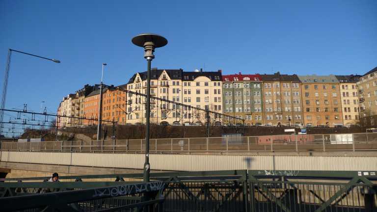En bild från vägen framför slottet upp mot kvarteret där jag bor. Mitt hus är ett av de beige i mitten, det med parabolantennen.